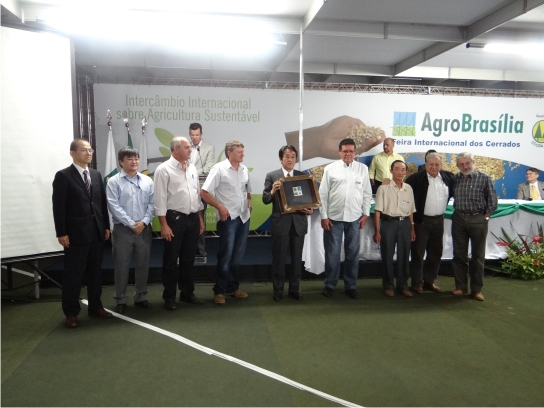 Logo após o seminário “40 anos de cooperação Brasil – Japão”, iniciou-se, no auditório Buriti da AgroBrasília, a segunda etapa de palestras e ato solene para prestar homenagem ao governo japonês.